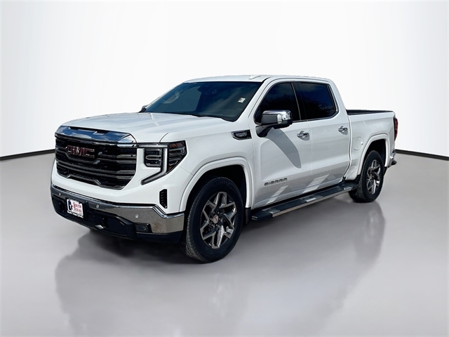 Clean CARFAX. CARFAX One-Owner. Summit White 2025 GMC Sierra 1500 SLT RWD 10-Speed Automatic EcoTec3 5.3L V8