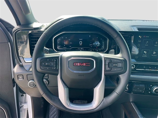 10-Speed Automatic, Black Leather, 10-Way Power Driver Seat Adjuster w/Lumbar, 10-Way Power Passenger Seat Adjuster w/Lumbar, 120-Volt Bed Mounted Power Outlet, 120-Volt Interior Power Outlet, 170 Amp Alternator, 2 Charge/Data USB Ports, 2 Charge/Data USB Ports Inside Center Console, 2 Type-C Charge-Only Rear USB Ports, 20`` Polished Aluminum Wheels, 3.23 Rear Axle Ratio, 4-Wheel Disc Brakes, 6 Speakers, 6-Speaker Audio System Feature, ABS brakes, Adaptive Cruise Control, Air Conditioning, Alloy wheels, AM/FM radio: SiriusXM with 360L, Apple CarPlay/Android Auto, Auto High-beam Headlights, Auto-dimming door mirrors, Auto-dimming Rear-View mirror, Auto-Locking Rear Differential, Automatic Emergency Braking, Automatic temperature control, Auxiliary External Transmission Oil Cooler, Body Color Wheel Arch Moldings (LPO), Brake assist, Buckle to Drive, Bumpers: chrome, Chrome Header & Chrome Grille Insert Bars, Chrome Wheel To Wheel Assist Steps, Color-Keyed Carpeting Floor Covering, Compass, Deep-Tinted Glass, Delay-off headlights, Driver door bin, Driver Memory, Driver vanity mirror, Dual front impact airbags, Dual front side impact airbags, Electric Rear-Window Defogger, Electronic Precision Shift, Electronic Stability Control, Emergency communication system: OnStar, Floor-Mounted Center Console, Following Distance Indicator, Forward Collision Alert, Front 40/20/40 Split-Bench Seat, Front anti-roll bar, Front Bucket Seats, Front Center Armrest w/Storage, Front dual zone A/C, Front fog lights, Front Frame-Mounted Black Recovery Hooks, Front License Plate Kit, Front Pedestrian Braking, Front Rain-Sensing Wipers, Front reading lights, Front wheel independent suspension, Fully automatic headlights, GMC MultiPro Tailgate Step Lights (LPO), HD Rear Vision Camera, HD Surround Vision, Heated 2nd Row Outboard Seats, Heated door mirrors, Heated Driver & Front Outboard Passenger Seating, Heated front seats, Heated steering wheel, High Capacity Suspension Package, Hitch Guidance, Hitch View, Illuminated entry, In-Vehicle Trailering System App, Integrated Trailer Brake Controller, IntelliBeam Automatic High Beam On/Off, Keyless Open & Start, Lane Keep Assist w/Lane Departure Warning, LED Cargo Area Lighting, Low tire pressure warning, Manual Tilt-Wheel & Telescoping Steering Column, Memory seat, Navigation System, Occupant sensing airbag, OnStar Services Capable, Outside temperature display, Overhead airbag, Overhead console, Panic alarm, Passenger door bin, Passenger vanity mirror, Perf Leather-Appointed Front Outboard Seat Trim, Perimeter Lighting, Power Door Locks, Power door mirrors, Power driver seat, Power Front Passenger Windows w/Express Up/Down, Power Front Windows w/Driver Express Up/Down, Power passenger seat, Power Rake & Telescoping Steering Column, Power Rear Windows w/Express Down, Power Sliding Rear Window w/Rear Defogger, Power steering, Power windows, Preferred Equipment Group 4SA, Premium Bose 7-Speaker Sound System, ProGrade Trailering System, Push Button Start, Radio data system, Radio: Premium GMC Infotainment Audio System, Rain sensing wipers, Rear Cross Traffic Braking, Rear Pedestrian Detection, Rear reading lights, Rear seat center armrest, Rear step bumper, Rear Wheelhouse Liners, Rear window defroster, Remote keyless entry, Remote Vehicle Starter System, Safety Alert Seat, Security system, Sierra Safety Plus Package, SiriusXM w/360L Trial Subscription, SLT Convenience Package, SLT Preferred Package, Speed control, Speed-sensing steering, Split folding rear seat, Spray-On Pickup Bedliner w/GMC Logo, Standard Suspension Package, Steering Wheel Audio Controls, Steering wheel mounted audio controls, Tachometer, Telescoping steering